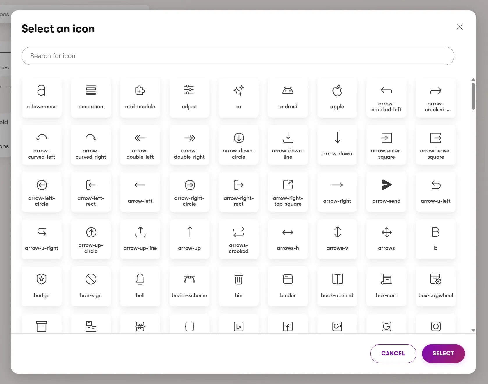 However, that isn’t the only icon set in the Xperience administration UI. An older set - still used for Page Builder, Email Builder widgets, and Form Builder components - is available separately for reference at https://devnet.kentico.com/docs/icon-list/index.html.