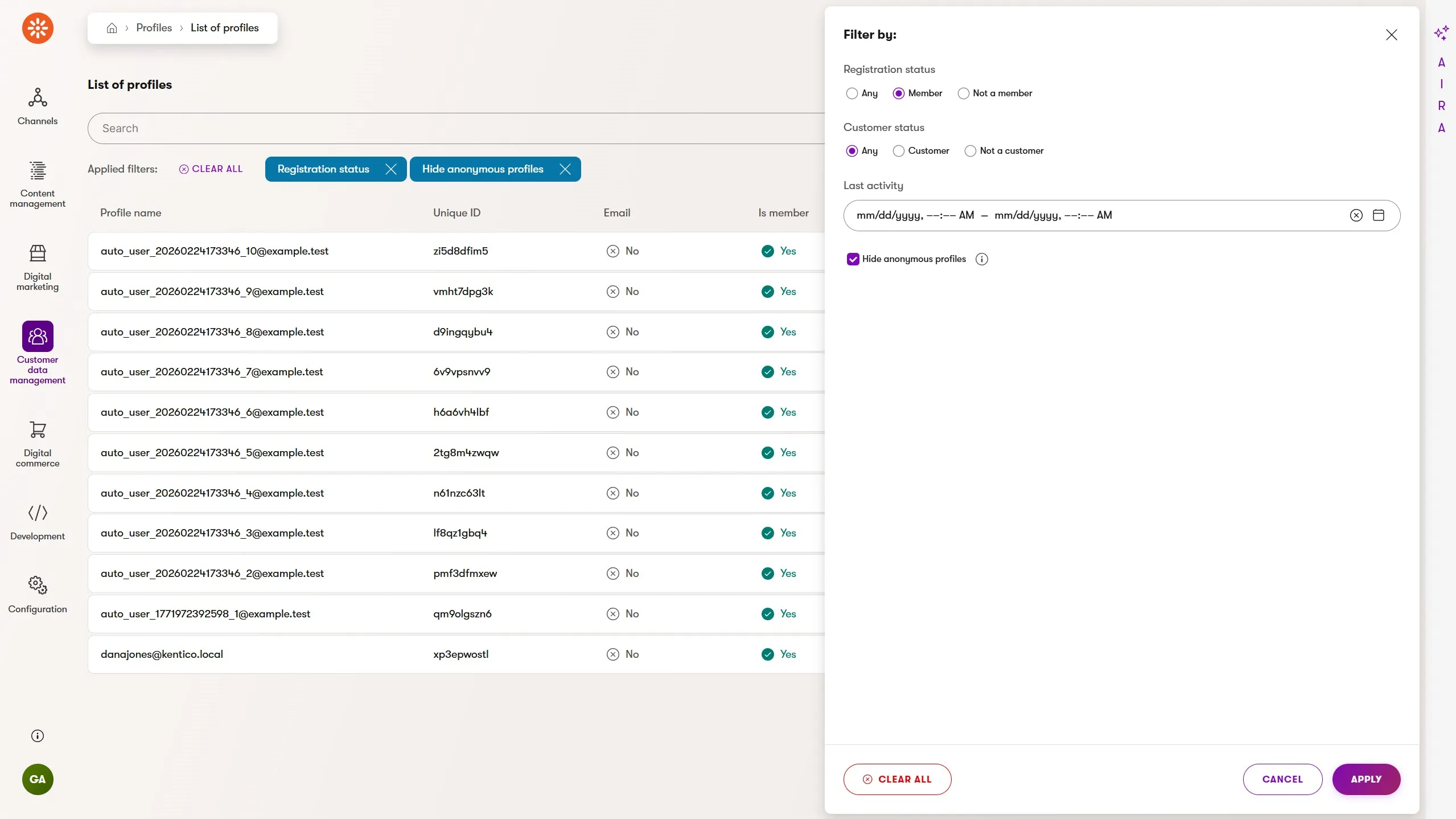 This view makes it easy to filter all profiles by membership and customer status, as well as focus on profiles that represent verified visitors who are further along in the marketing funnel and most likely to convert.