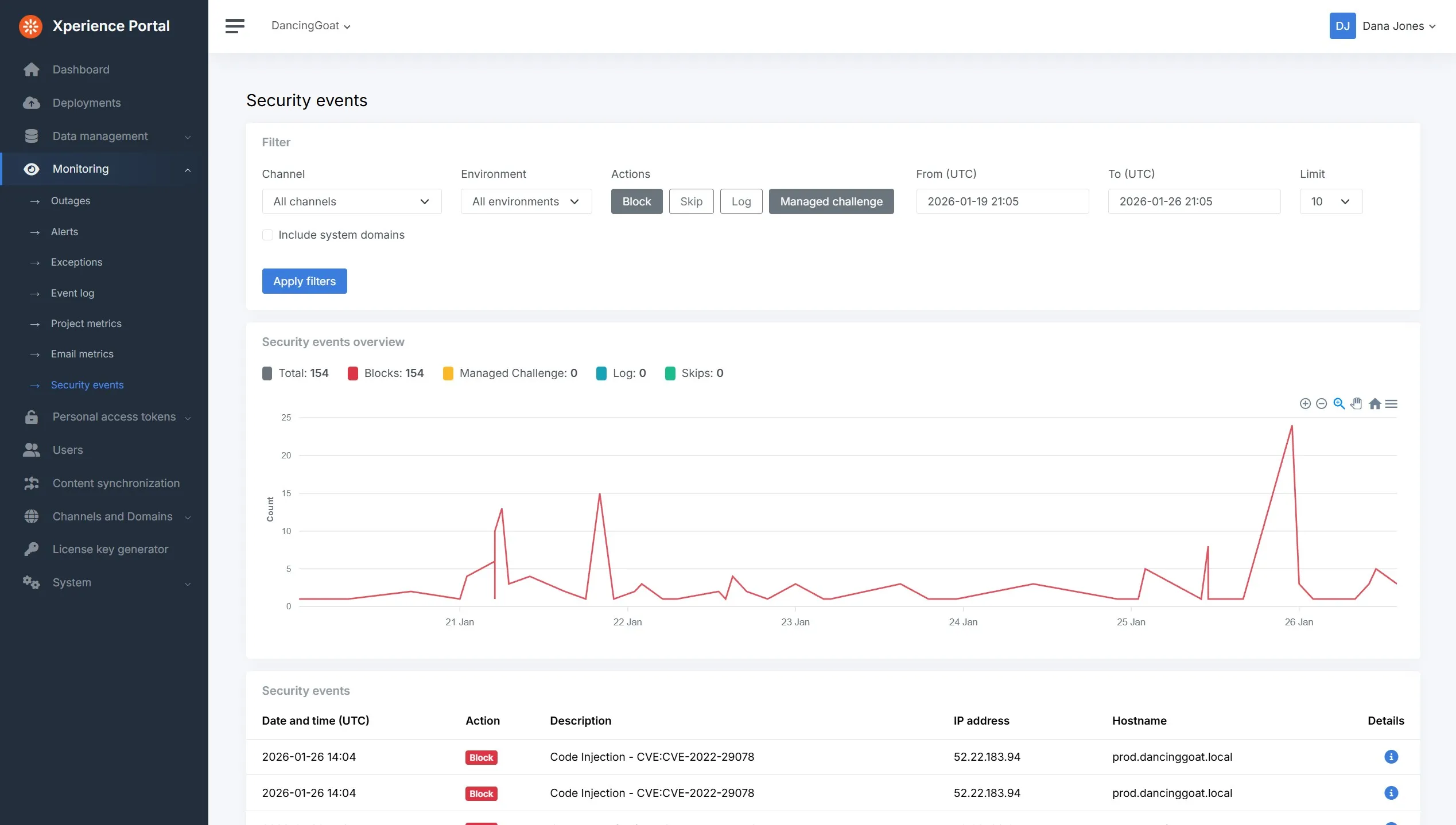 Of course, there's an overlap where observability meets security and to that end we've introduced security event monitoring in the Xperience Portal.